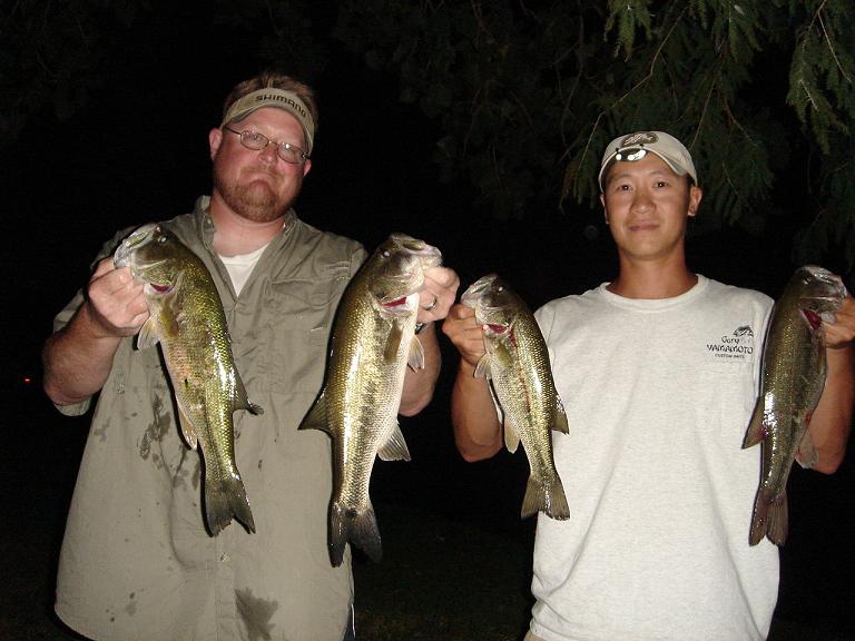 It’s anyone’s game on Austin right now; TTZ fishing team members Brian Booker and Andy Nuyen proved it tonight by taking first place with only four fish going 7.85 pounds. Brian and Andy fished some docks and brush piles early in the evening and quickly realized the fish were not shallow due to all the recreational traffic on the lake. Making a drastic change in their game plan, the two headed for deeper water and caught their four keepers on a topwater frog, Yamamoto Senkos and a TTZ hand tied jig with a Yamamoto Flappin’ Hog trailer. All of their fish, with the exception of the frog bite, came from 12-15 feet of water. Brian caught the team’s largest fish under an overhanging tree adjacent to deep water.