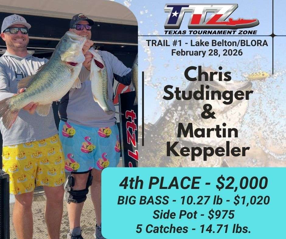 Congratulations to ADAM CLARK and ERIC VASQUEZ for winning the first Team Trail Event of 2026 at Lake Belton, on February 28, 2026!